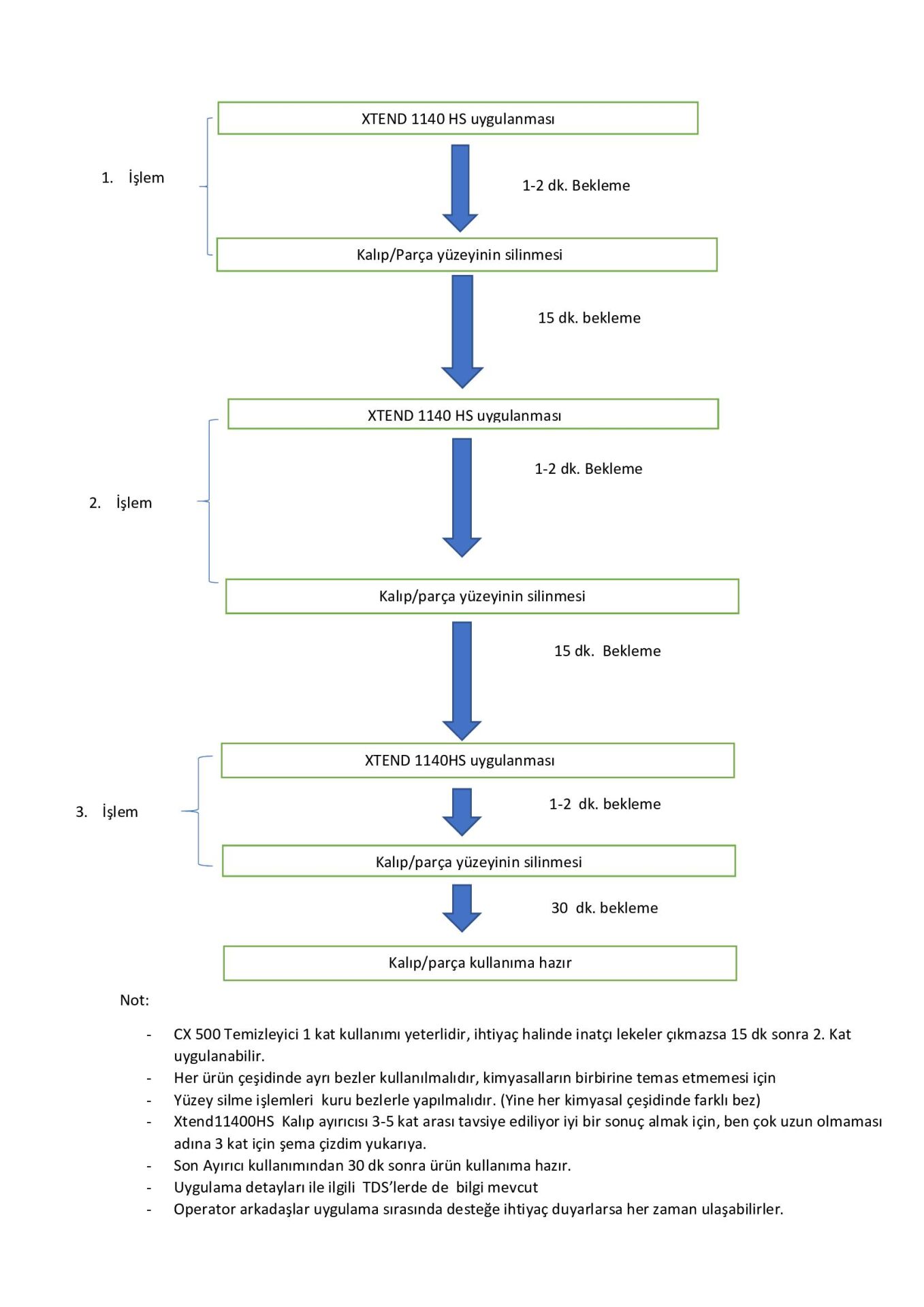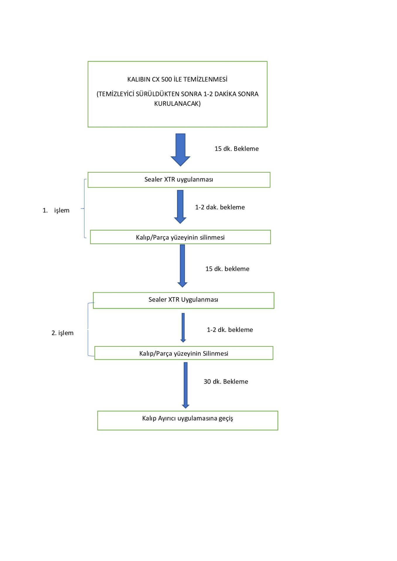 Kalıp ayırıcı uygulamadan önce minimum 30 dakika bekleyin.
