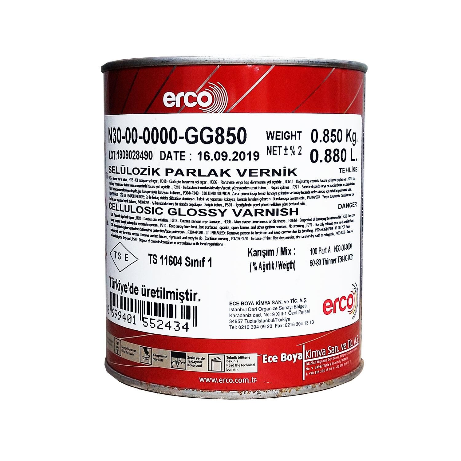 Erco Selülozik Parlak Vernik 0,85 KG